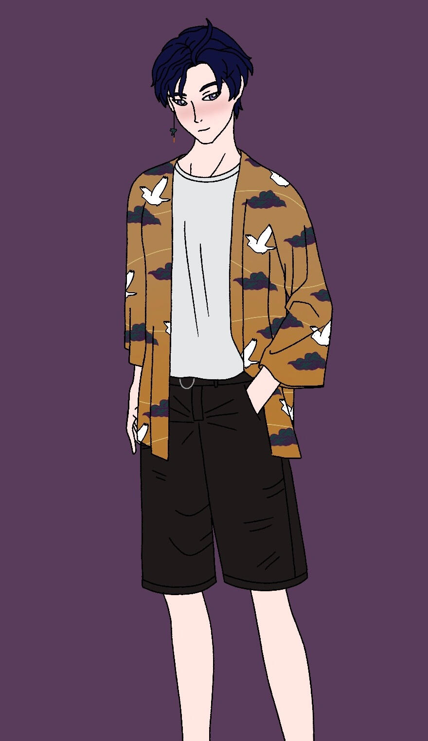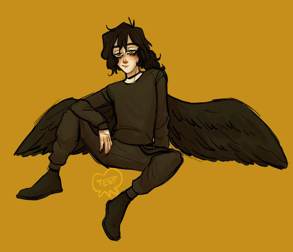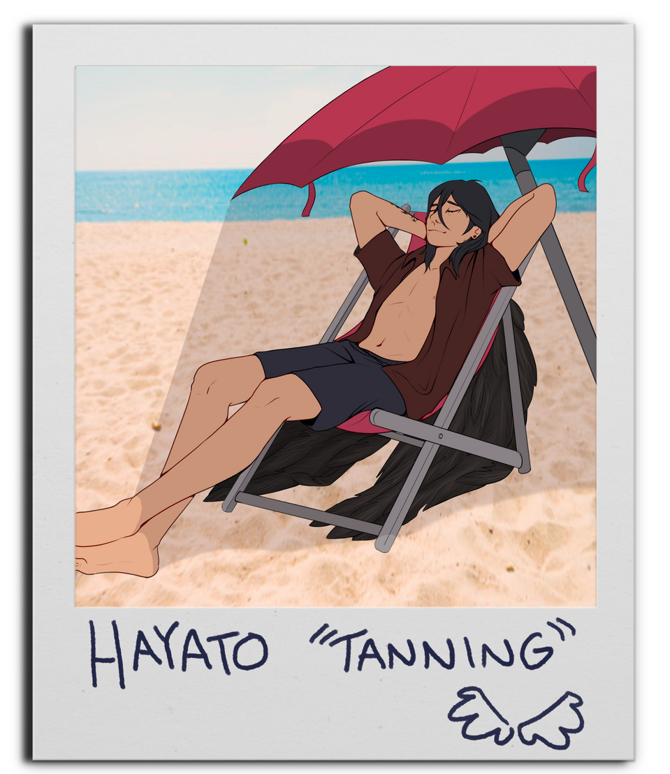Hayato can best be described as someone who is quiet and mysterious. He is a tough person to crack due to the walls he’s built around himself, so his vulnerability is not easy to see. He keeps his thoughts to himself since he is a private person and doesn’t trust easily. He also doesn’t like being the center of attention.He won’t mess with anyone unless provoked but even that doesn’t get far. He has mastered what is called a “death stare” where he glares at anyone who tests him intensely. The look alone is enough to get people to rethink their choices. If he does speak, his words are sharp and cut deep. While he did get into a lot of physical fights as a kid, he tries to avoid it as an adult.Although he does not like his wings touched, this also extends to the rest of his body. This changes slightly when Akio is around since Akio can be very hands on. This was a problem at first but Hayato adjusted slightly. He simply sends all his feathers away or move his wings if Akio insists on being close. His best friend Titus is the same way but he knows Hayato better than Akio to really over do it (sometimes he does forget though).MENTAL ILLNESS:Hayato has depression and has moments where he gets lost in it. He will seclude himself from everyone for days at a time without care. This either involves him being confined to his room while sleeping in complete darkness or he’ll leave his home. He can usually be found on the rooftops of skyscrapers overlooking the city. It’s the one place no one will disturb him. I wouldn’t say he’s an anxious person overall but anxiety does show when his true quirk is involved.He is no longer suicidal as he was as a teenager but the thoughts do come back sometimes. He has only attempted twice.He does have scars on his arm (one long one on each arm), I just haven’t drawn them. He mostly keeps his arms covered unless it’s too hot and he has a short sleeved shirt on or is shirtless. Titus knows about this incident but Akio does not. He does not share that information with him since he deems it not necessary. The scars speak for themselves.FEAR:Hayato’s worst fear is accidentally killing someone or hurting someone badly with his decay quirk. It is the reason why he does not like anyone touching him. It is the easiest way to piss him off but the true feeling is not anger but fear. However he still craves physical touch, which is why he adjusted slightly to Akio’s needs to be all up on him (like a cat, quite literally). It was very strange to be touched at first and his uncomfort was visible but it’s a work in progress.His usual go to if someone is getting too close is his death stare or to move away but if he has to speak he’ll just say “Don’t touch me” or “Don’t touch my wings”.To make matters worse, only Titus knows about Hayato’s true quirk. Akio does not. He learns about this later.