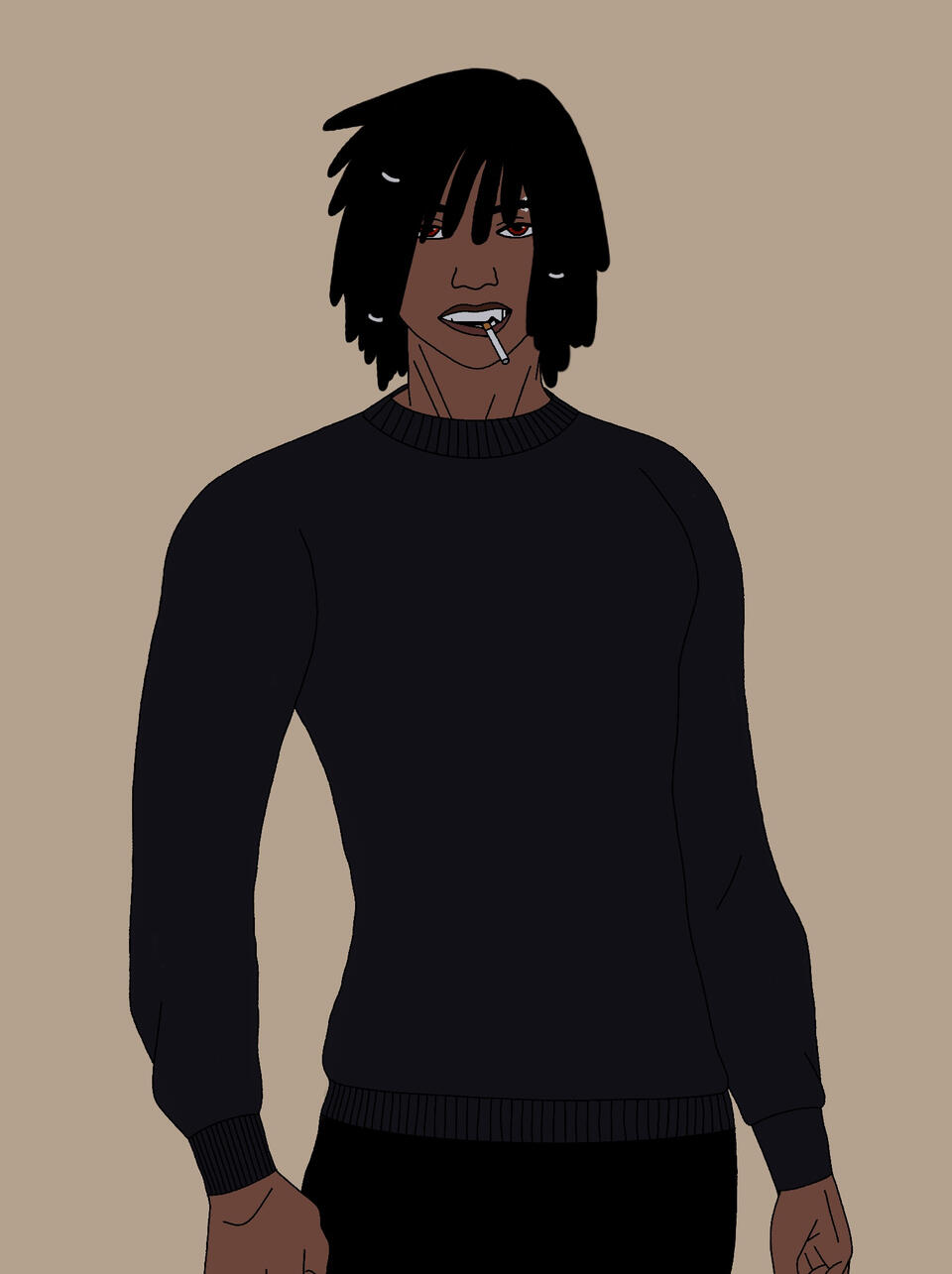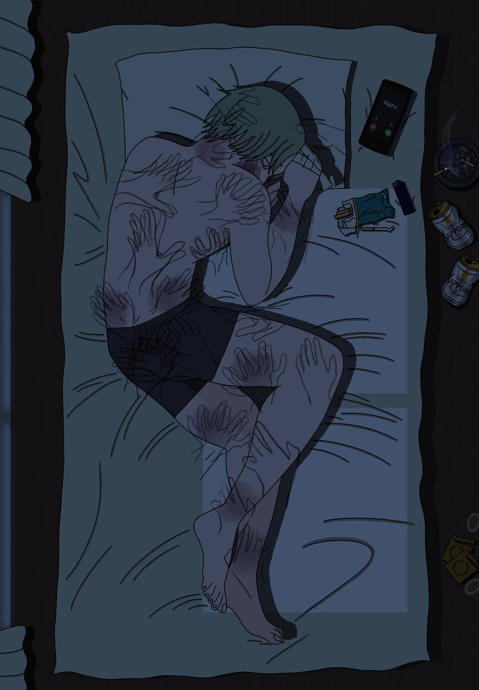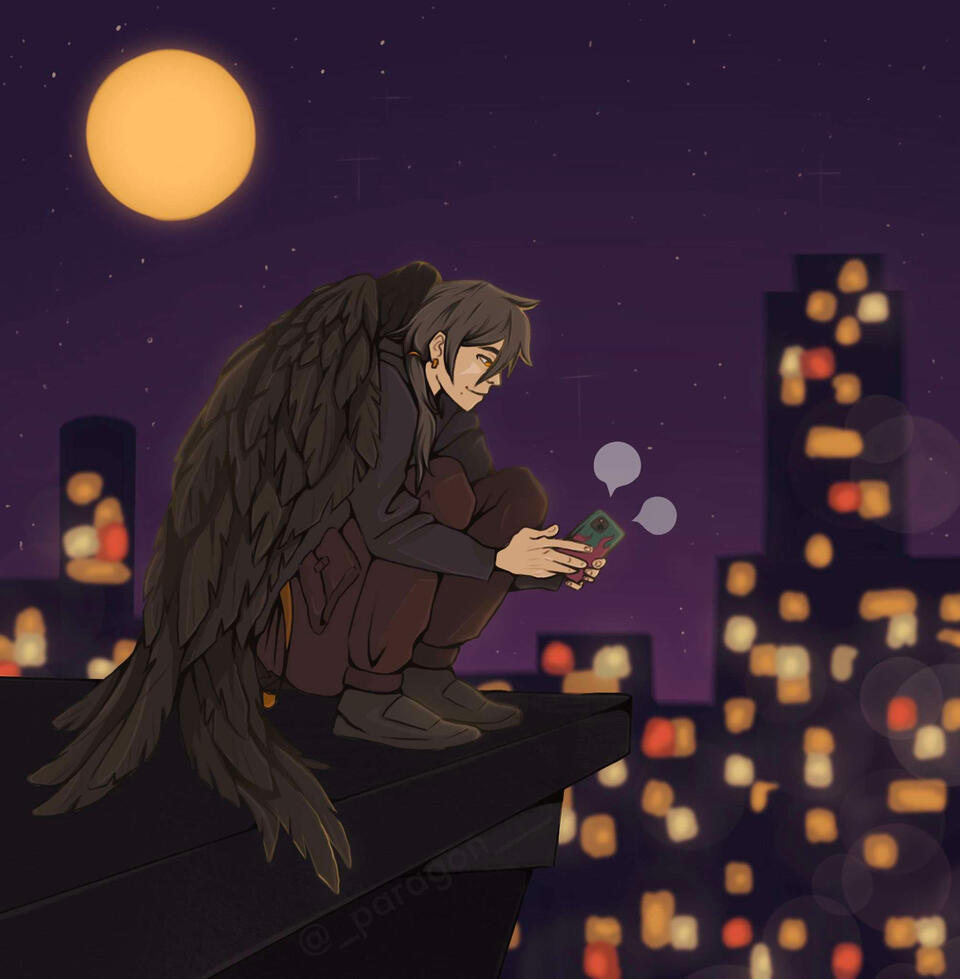 Hayato can best be described as someone who is quiet and mysterious. He is a tough person to crack due to the walls he’s built around himself, so his vulnerability is not easy to see. He keeps his thoughts to himself since he is a private person and doesn’t trust easily. He also doesn’t like being the center of attention.He won’t mess with anyone unless provoked but even that doesn’t get far. He has mastered what is called a “death stare” where he glares at anyone who tests him intensely. The look alone is enough to get people to rethink their choices. If he does speak, his words are sharp and cut deep. While he did get into a lot of physical fights as a kid, he tries to avoid it as an adult.Although he does not like his wings touched, this also extends to the rest of his body. This changes slightly when Akio is around since Akio can be very hands on. This was a problem at first but Hayato adjusted slightly. He simply sends all his feathers away or move his wings if Akio insists on being close. His best friend Titus is the same way but he knows Hayato better than Akio to really over do it (sometimes he does forget though).MENTAL ILLNESS:Hayato has depression and has moments where he gets lost in it. He will seclude himself from everyone for days at a time without care. This either involves him being confined to his room while sleeping in complete darkness or he’ll leave his home. He can usually be found on the rooftops of skyscrapers overlooking the city. It’s the one place no one will disturb him. I wouldn’t say he’s an anxious person overall but anxiety does show when his true quirk is involved.He is no longer suicidal as he was as a teenager but the thoughts do come back sometimes. He has only attempted twice.He does have scars on his arm (one long one on each arm), I just haven’t drawn them. He mostly keeps his arms covered unless it’s too hot and he has a short sleeved shirt on or is shirtless. Titus knows about this incident but Akio does not. He does not share that information with him since he deems it not necessary. The scars speak for themselves.FEAR:Hayato’s worst fear is accidentally killing someone or hurting someone badly with his decay quirk. It is the reason why he does not like anyone touching him. It is the easiest way to piss him off but the true feeling is not anger but fear. However he still craves physical touch, which is why he adjusted slightly to Akio’s needs to be all up on him (like a cat, quite literally). It was very strange to be touched at first and his uncomfort was visible but it’s a work in progress.His usual go to if someone is getting too close is his death stare or to move away but if he has to speak he’ll just say “Don’t touch me” or “Don’t touch my wings”.To make matters worse, only Titus knows about Hayato’s true quirk. Akio does not. He learns about this later.