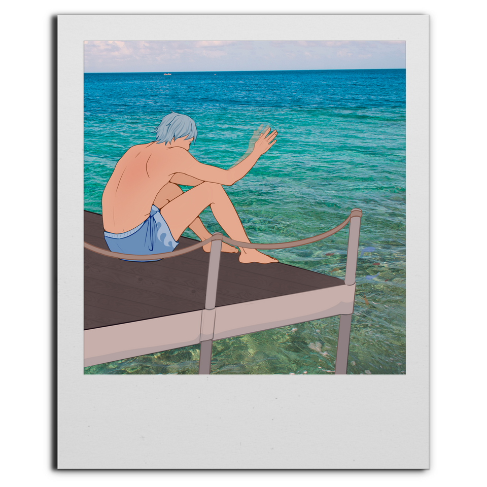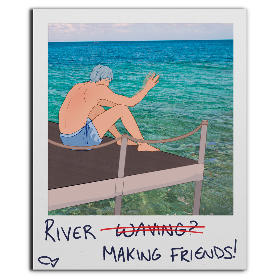 - Hayato and Akio were at the beach when they saw a crowd gathering around a dolphin that washed up on shore. Since River could understand the sea creature he ran up to them and started yelling at the people. However, River is also a foreigner so the people there got mad at him.- Hayato could care less about interfering but Akio did and wanted Hayato to help, so they went over. Since he had those big scary wings he ddidn’t have to say much but one line for people to back up. Everyone cleared away. River thanked them and wanted help to bring the dolphin back into the water because he couldn’t touch the water or the animal due to his "allergy".- Unfortunately it was too late for the dolphin so Hayato thought it was best to put it out of its misery. River didn’t want to but it wasbest, so Hayato decayed the creature with a feather, turning it to dust. River got a bit emotional seeing this.- Akio then invited River to sit with them for a bit since he was emotional. Hayato isn’t good with emotions so Akio took over. They learned about his aquatic telepathy quirk, which is how he knew the dolphin was suffering and what Hayato did was right. They also learned he was an American in Japan for a music competition, though he's not supposed to be on the beach.- After some time his mom found him on the beach and yelled out to him. When she got closer, she scolded him and dragged him out of there. He looked at Hayato and Akio like he didn’t want to leave but he was out of options and left.- Hayato and Akio eventually see River again, I just haven't decided how.