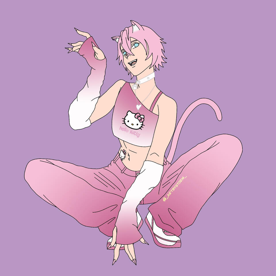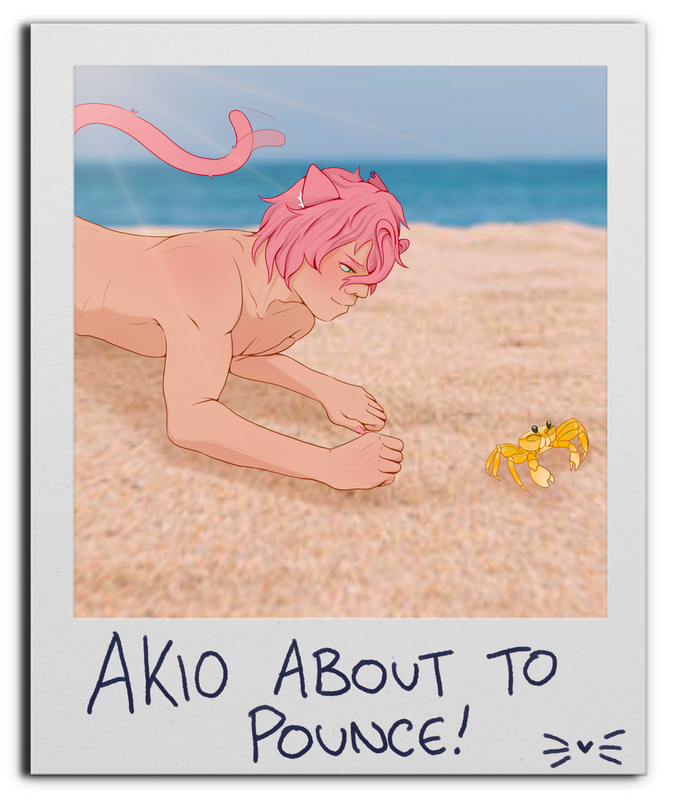 Akio has the ability to shapeshift into an actual cat. Here’s how it works:When in human form, he retains his cat ears and tail. He has very good eyesight but can see best in the dark. His pupils do change depending on the amount of brightness outside or if he’s focused on something. He also has long nails for scratching and he does have fangs. His hearing is better and he can leap a little higher than an average human.In cat form, he has all the qualities of a cat but loses the ability to speak as a human. He can understand humans still but can only respond with meows, hisses, chirps, etc.His tattoo on his stomach disappears under his fur but his ear piercing is visible and his fur is pink.STRENGTHS -