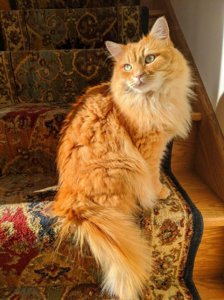- Kinako is a very intelligent cat and is attuned to people’s mood and behaviors. Around strangers she’s reserved as she observes them, but will approach them to sniff them for approval. If she likes them, she’ll let them pet her. If not she’ll walk away. She’ll also look out for how they interact with Kenji, since she is very loyal and protective of him. In a way, she is like Kenji when it comes to this.With Noa- Noa was shocked meeting Kinako because he had never seen a cat that big. Kinako observed him from far until she got close to him. He crouched down and extended his hand to let her smell him. He ended up getting her seal of approval and he was able to pet her until she walked away.- As more time passes and Noa shows up more, she takes a liking to him. On a rare occasion, Kenji once woke up to Kinako sleeping on top of Noa’s back and purring very loud. Noa didn’t notice because he is a heavy sleeper and sleeps like a starfish. Kenji had to get her off of him.- If Noa were to get worked up, she observes the situation before approaching. If he’s calm enough to be approached, she’ll nudge his leg or tap him to let him know she’s there. If he’s having a full blown meltdown, she will keep her distance and watch him until she can get close. She is not a skiddish cat.