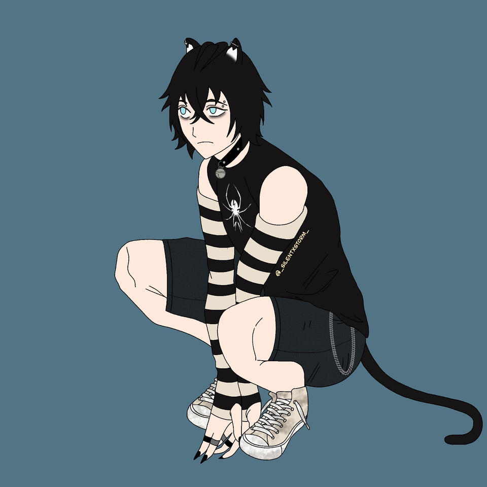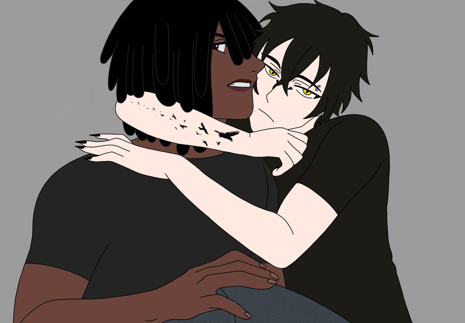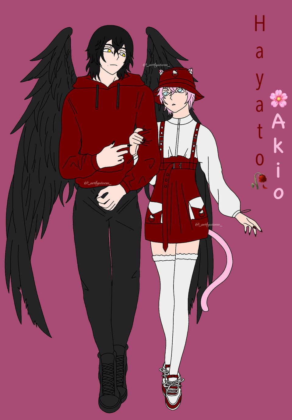 Hayato can best be described as someone who is quiet and mysterious. He is a tough person to crack due to the walls he’s built around himself, so his vulnerability is not easy to see. He keeps his thoughts to himself since he is a private person and doesn’t trust easily. He also doesn’t like being the center of attention.He won’t mess with anyone unless provoked but even that doesn’t get far. He has mastered what is called a “death stare” where he glares at anyone who tests him intensely. The look alone is enough to get people to rethink their choices. If he does speak, his words are sharp and cut deep. While he did get into a lot of physical fights as a kid, he tries to avoid it as an adult.Although he does not like his wings touched, this also extends to the rest of his body. This changes slightly when Akio is around since Akio can be very hands on. This was a problem at first but Hayato adjusted slightly. He simply sends all his feathers away or move his wings if Akio insists on being close. His best friend Titus is the same way but he knows Hayato better than Akio to really over do it (sometimes he does forget though).MENTAL ILLNESS:Hayato has depression and has moments where he gets lost in it. He will seclude himself from everyone for days at a time without care. This either involves him being confined to his room while sleeping in complete darkness or he’ll leave his home. He can usually be found on the rooftops of skyscrapers overlooking the city. It’s the one place no one will disturb him. I wouldn’t say he’s an anxious person overall but anxiety does show when his true quirk is involved.He is no longer suicidal as he was as a teenager but the thoughts do come back sometimes. He has only attempted twice.He does have scars on his arm (one long one on each arm), I just haven’t drawn them. He mostly keeps his arms covered unless it’s too hot and he has a short sleeved shirt on or is shirtless. Titus knows about this incident but Akio does not. He does not share that information with him since he deems it not necessary. The scars speak for themselves.FEAR:Hayato’s worst fear is accidentally killing someone or hurting someone badly with his decay quirk. It is the reason why he does not like anyone touching him. It is the easiest way to piss him off but the true feeling is not anger but fear. However he still craves physical touch, which is why he adjusted slightly to Akio’s needs to be all up on him (like a cat, quite literally). It was very strange to be touched at first and his uncomfort was visible but it’s a work in progress.His usual go to if someone is getting too close is his death stare or to move away but if he has to speak he’ll just say “Don’t touch me” or “Don’t touch my wings”.To make matters worse, only Titus knows about Hayato’s true quirk. Akio does not. He learns about this later.